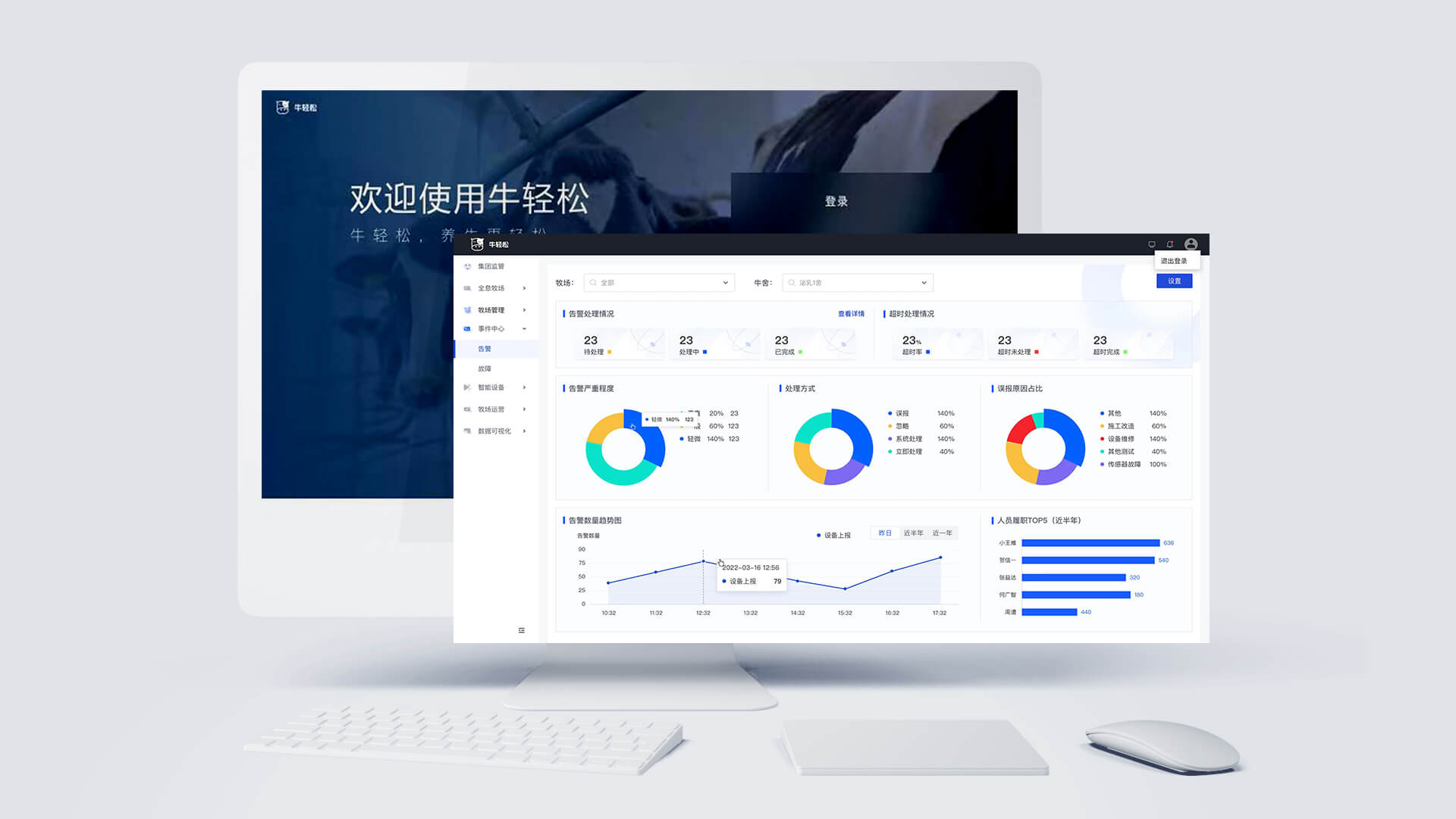 牛輕松對牧場的智能風機系統、噴淋系統、視頻監(jiān)控系統、智能照明系統、能源監(jiān)測系統、環(huán)境監(jiān)測系統、工單系統等進行統一的管理與聯動配置。產品的應用實現牧場內所有設備的一鍵全連、協同聯動及可視化管理,輔助牧場能夠綠色的、高效的、可持續盈利的長足發(fā)展。